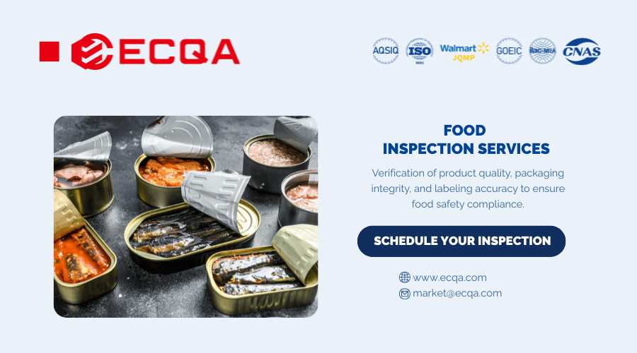 ECQA provides independent third-party food inspection services covering product condition checks, packaging inspection, net content verification, and labeling review to support quality control and compliance needs.
